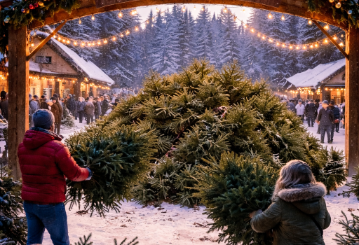 Einsammeln der Weihnachtsbäume